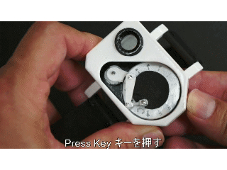 ボタンを押し指示を出すと小さなアームがカシャカシャと動く様はとてもかわいらしく時計を見るのが楽しくなります。