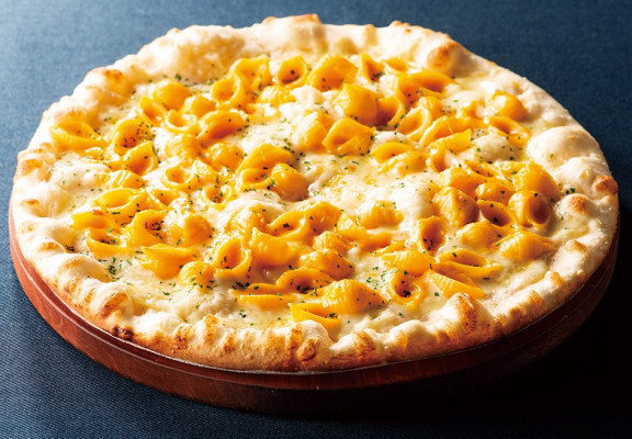 8月の月替わりピザは、「アメリカの家庭の味」とも称され、お子様も大好きな「マカロニチーズ」をトッピングしたピザが初登場です。