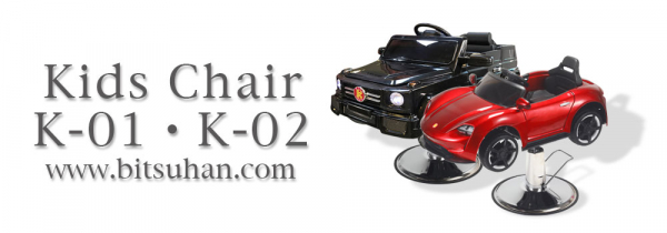「キッズチェア K-01・K-02 (シート+ベース)」は、サロンに来店したお子様が楽しく飽きずに施術を受けられる、名車をイメージさせるキッズカーチェアです。お子様だけでなく、親御様にも「行きたい」と思ってもらうことがキッズカットを集客につなげるポイントです。店舗ディスプレイとしても「キッズ歓迎」のメッセージを伝える事ができますので、親子で通えるお店づくりのお役に立てていただきたいと考えております。