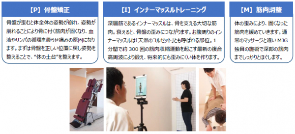 「PIMバランス整復」は、骨盤矯正(Pelvis)×インナーマッスルトレーニング(Inner muscle)×筋肉調整(Muscle)の施術により、痛みの根本改善を目指す当社独自の施術メニューです。PIMバランスを整えることにより、痛みの根本改善、痛みの出ない体づくりを実現していきます。確立されたメソッドがあることで、他店舗展開でもサービスクオリティを落とすことなく、高い技術を提供できます。