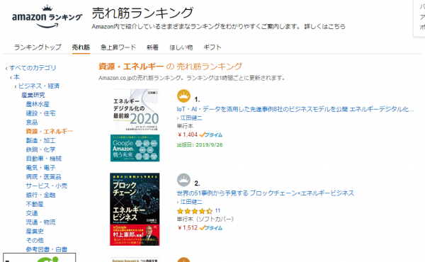 RAUL株式会社 代表 江田健二の著書「エネルギーデジタル化の最前線2020」(9月26日発売)が、Amazonの資源・エネルギー部門売れ筋ランキングで9月5日に1位になりました。