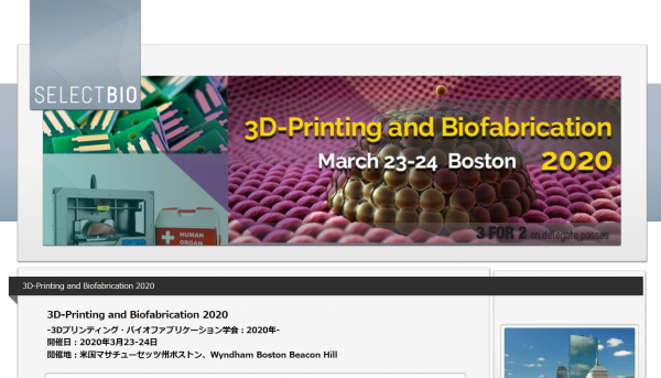 国際会議「3Dプリンティング・バイオファブリケーション学会 2020年」(Select Biosciences, Ltd.主催)の参加お申込み受付開始