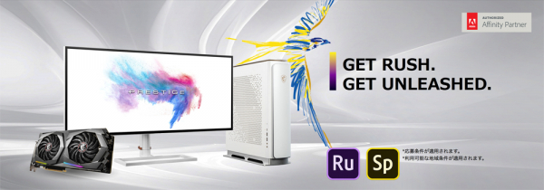 2019年10月2日 - Micro-Star International Co., Ltd. 台湾・新北市 - GAMINGハードウェアの設計で世界をリードするMicro-Star International(MSI)は、指定のグラフィックスカードを購入された方にAdobe Premiere Rushの3カ月無料版をプレゼントする「Get Rush. Get Unleashed.キャンペーン」を2019年8月28日より実施していますが、9月30日よりキャンペーン対象製品をデスクトップPC、マザーボード、モニター、PCケースにも拡大いたしました。