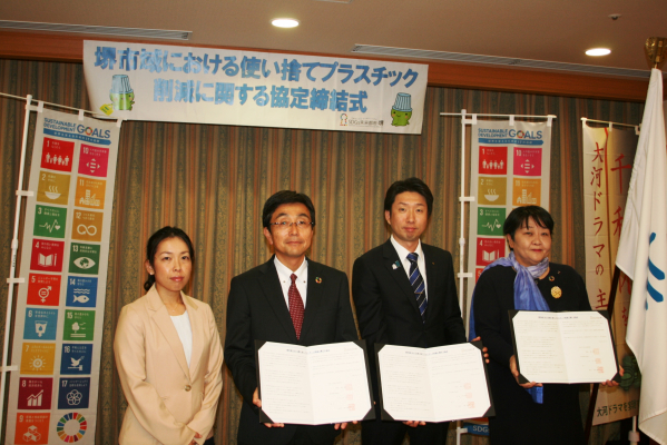 2019年10月23日、堺市・堺市消費生活協議会・大阪いずみ市民生協の3者は「使い捨てプラスチック削減」に関する協定を締結しました。