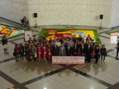 会場では、早朝から実行委員と晴海地域のボランティアスタッフが総勢約200名で花絵の制作に携わり、各グループに分かれて花むしり〜アウトライン作成、仕上げまで一丸となって取り組みました。完成後のオープニングセレモニーでは、「フラワーカーペット晴海2019」実行委員長 滝浪誠氏、株式会社 晴海コーポレーション 代表取締役社長 谷川慶吾氏、中央区長 山本泰人氏が登壇し、参加者を労いました。最後には参加者全員で記念撮影を行い、イベント初日は和やかな雰囲気で幕が開けました。