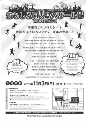 2019年11月3日(日曜日)、おもしろ同人誌バザール実行委員会(主催・サークル「版元ひとり」、運営事務局・株式会社ユータック)は、東京の書店街、神保町で、情報系同人誌&インディーズ本の展示即売会「おもしろ同人誌バザール8」を開催します。