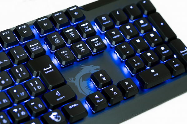 また、各キーにはRGB LEDを搭載しており、100万色以上の色をMSI Dragon Centerを介して自由に割り当てられるほか、照明効果をキーボード上のMSIドラゴンキー(Fnキー)と組み合わせた操作で変更、調整することも可能です。このMSIドラゴンキーとの組み合わせにより、MSI独自のオーバークロックツールAfterburnerの起動や、ビデオや音楽の操作に便利なメディアキーも割り当てられており、ゲーム以外の用途でも、快適にお使いいただくことができます。