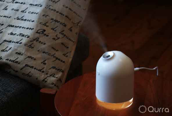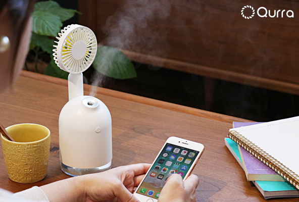 そこで当社は、取り外し可能なファンを合体させることで効率的に加湿ができ、夏場はハンディファンとしても使用できる卓上加湿器「Qurra Anemo Misty mini(クルラ アネモ ミスティ ミニ)」を開発しました。この卓上加湿器は以下の機能で特徴づけられます。