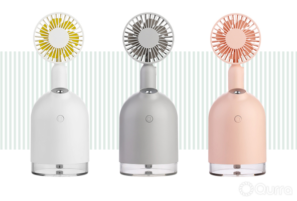 加湿器とハンディファンが夢の合体。送風機能でより広範囲にわたって加湿ができ、夏場はハンディファン・ミストファンとしても使用できる4WAY卓上加湿器を新発売。