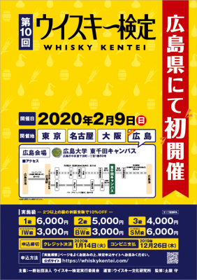 株式会社ウイスキー文化研究所(東京都渋谷区/代表取締役社長:土屋守)と一般社団法人ウイスキー検定実行委員会(東京都渋谷区/代表理事:土屋守)は、第10回ウイスキー検定(2020年2月9日(日)開催)での広島会場開催にともない、PR活動にご協力いただける新規PR協力店の募集を2019年11月26日(火)より開始いたします。