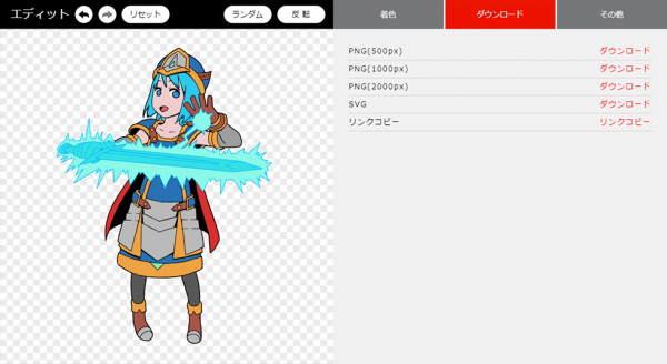 本サイトで配信されている素材はPC、スマホのブラウザ上で自由にカラーエディットでき、その内容をpngデータとして無料でダウンロードすることができます。