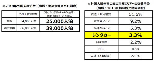 昨今関西を訪れる外国人観光客数が伸びている一方で、大阪や京都の中心地などを含むゴールデンルートに集中しているため、北関西、山陰や北陸など日本海側エリアへ誘致することが課題となっています。また、訪日外国人の旅行ニーズの多様化と興味の深度化によりレンタカー需要が高まってきています。そこで、本ドライブツアーによってレンタカーを活用した日本海側の新たな観光ルートを通して、観光需要の創出を目指します。