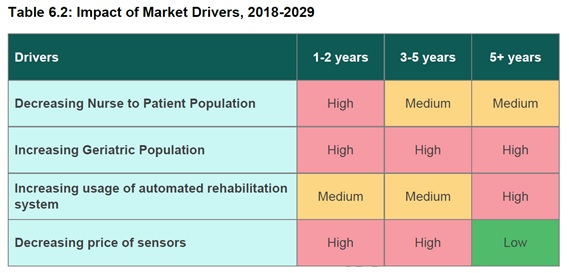 自動リハビリテーションシステムの信頼性により、患者の回復または支援のためのこのような製品の要件が高まっています。必要なモードに設定すると、カスタマイズされたトレーニングを提供することにより、他の人に対する患者の依存度を低下させます。自動化されたシステムは高品質のトレーニングを提供し、身体的外傷から回復し、タスクの高い反復性と強度を提供し、医学療法の有効性をさらに高めます。また、患者が行う活動を容易にし、運動の発達を強化します。