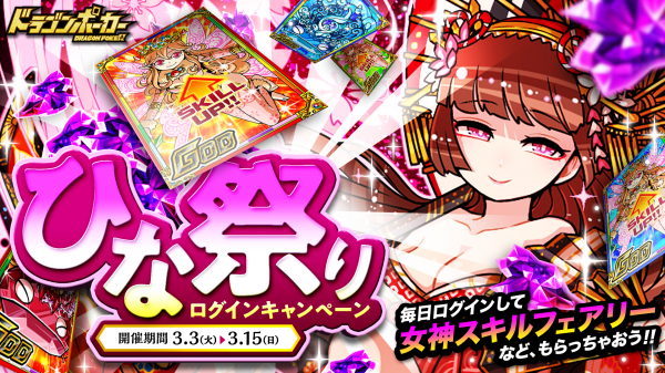 『ドラゴンポーカー』で「ひな祭りログインキャンペーン」が3月3日(火)より開催! 毎日ログインして豪華アイテムをGET!