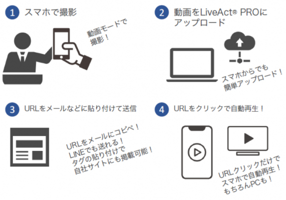 (2) 専門知識は一切不要。撮影してアップロードするだけで、再生用URLが発行されます。