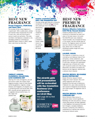 2020年3月4日ロンドンで行われたHPCi Media社主催の Pure Beauty Global Award 2020 の Best New Fragrance 部門において、600を超えるブランドの中からアトムボディ&ファブリックミストがファイナリストに選ばれました!