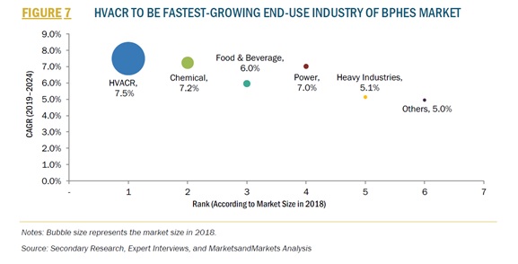 最終用途産業に基づいて、BPHEs市場は、HVACR、化学、食品および飲料、電力、重工業などに大別されます。 その他のカテゴリには、海洋および地域エネルギーが含まれます。 HVACRは、予測期間中に7.5%のCAGRを登録する最も急成長しているセグメントであると予想されます。 このセグメントは、2018年に51.5%の最大の市場シェアを占めています。HVACR業界は、グローバルな建設部門からの需要の増加により急速に成長する予定です。 グローバル化、都市化、生活水準の向上、購買力平価(PPP)の増加、インフラ開発、新興国でのメガシティ建設の必要性の高まりにより、グローバル建設部門は成長しています。