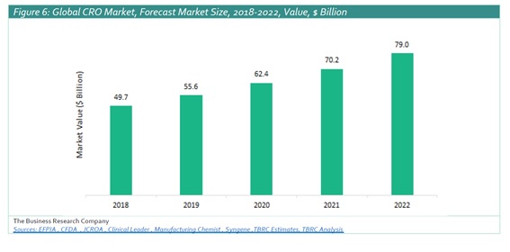 バイオ医薬品の需要の増加と産業への投資の増加。 成長のもう1つの分野は、医療機器の分野です。一部のCROは、医療機器の臨床試験に対する需要の高まりに応えるため、この未開拓市場にますます注目しています。