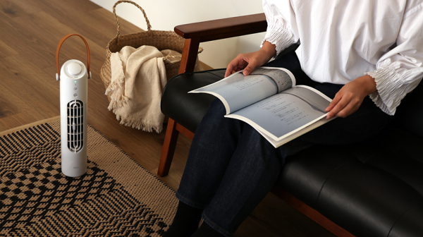 風量無段階調整、人感センサーがついた省エネなコードレスアロマタワーファンが新登場!