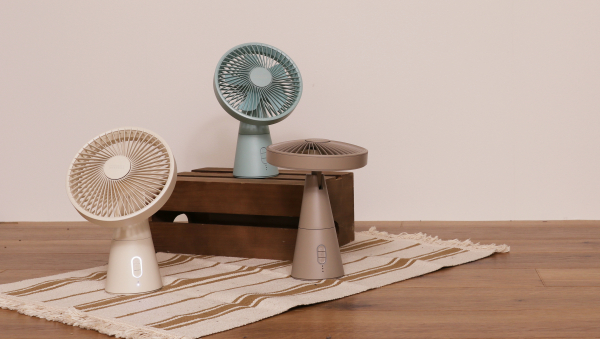 リビングの扇風機が充電式に。ここまで小さくなりました。LEDライト機能が付いたコードレスミニリビングファンが新登場!