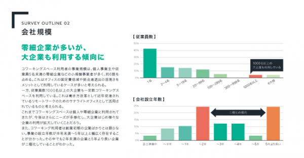 コワーキングスペースは、IT系やコンサルティングなどの働く場所に依存しない業種の小規模事業者を中心として多様な層に利用されており、また働き方改革による大企業のサテライトオフィスとしても利用されていることが明らかになりました。
