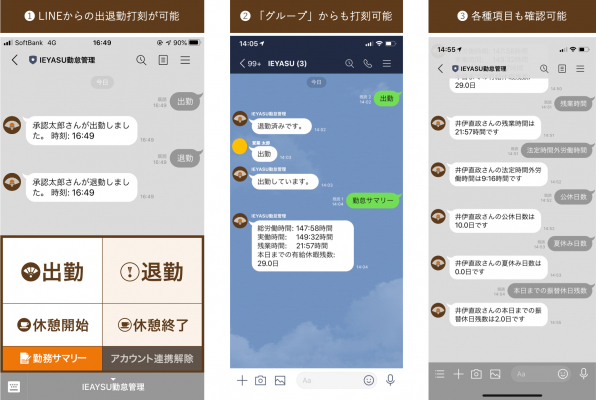 ■IEYASUの『LINE打刻』でできること