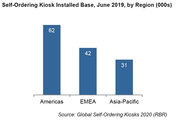 セルフオーダーキオスクは、顧客本人が食事体験をコントロールできる重要なコンポーネントです。Retail Banking Researchの新刊レポートによると、2019年6月時点における世界のインストール数は13万5,000台でした。
