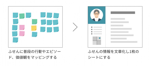ターゲットユーザーを調査・観察し、ユーザーの行動やその背景を整理します。サービスの方向性を決めるために行います。
