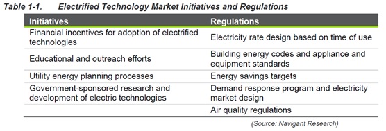 地域の燃料価格と設備および設置の資本コストは、電化された技術の経済的競争力の特に強い決定要因です。 表1-1に示すように、電化技術をサポートする市場には通常、規制とイニシアチブがあります。 これらの政策条件に加えて、この多様な市場で市場参入戦略を展開する際には、地域の気候プロファイルとコスト比較も役立ちます。
