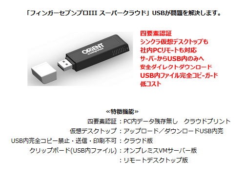 ソフト・ハードのセキュリティ製品開発、セキュリティ管理システムの開発メーカーであるオリエントコンピュータ株式会社では、新テレワーククラウド利用を安全に外部作業で行うための「フィンガーセブンプロIII スーパークラウド」USBを2020年3月24日発売受付致します。
