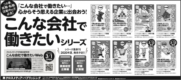 ビジネス書の出版や企業研修を手掛ける株式会社クロスメディア・マーケティング(本社:東京都渋谷区、代表取締役:小早川幸一郎)内のクロスメディアHR総合研究所は、2020年3月1日より就職生を支援する書籍「こんな会社で働きたい」シリーズのWEBメディアを新たに開設しました。