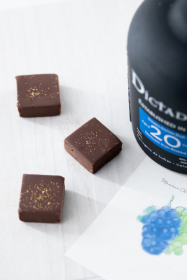 こちらの商品は、昨年発売した人気商品の「ラムシャインマスカット20年熟成」と「ラムピオーネ20年熟成*」の製造時に副産物として出来た自家製ぶどうの熟成ラム酒を使用した生チョコレートとなっています。