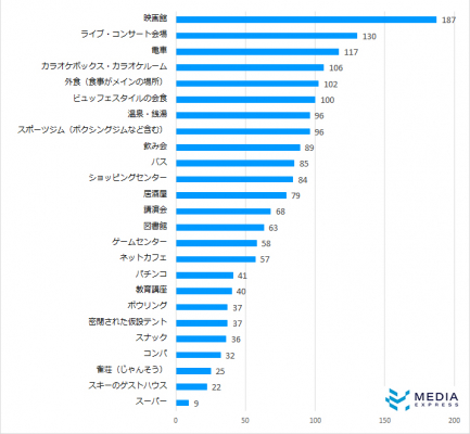 行かない、避けている場所としては、上位から映画館、ライブ・コンサート会場、電車となっていますが、それ以下についても、不特定多数の人がいる密閉された空間は避けている方が多くなっています。
