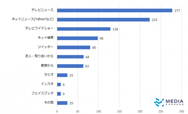 コロナウイルス感染症の情報元は、テレビニュース、ネットニュースが半数以上を占めました。