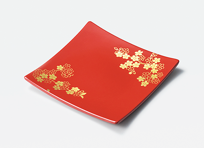 【箔一】本金箔 紅桜 スクエアプレート L 〜金箔(金沢箔)の食器〜