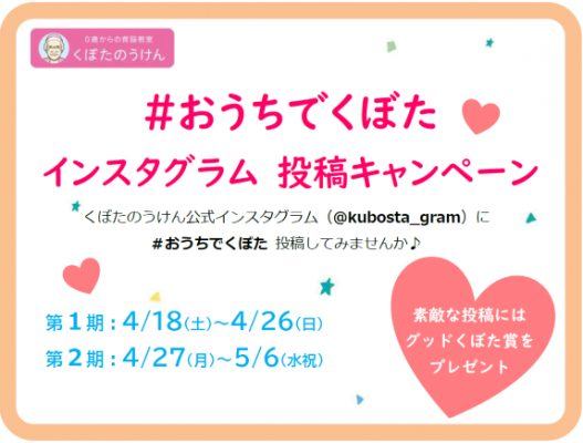 また、自宅で育脳法にチャレンジしている様子を撮影した写真や動画を公式インスタグラムに投稿する「#おうちでくぼた インスタグラム投稿キャンペーン」も実施しています。