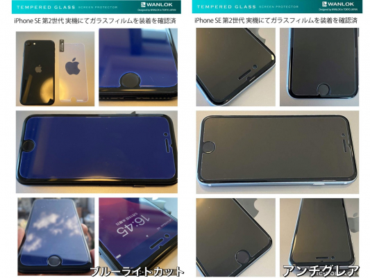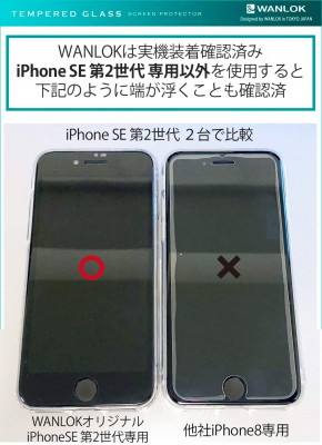 WANLOK iPhone SE実機にて「浮き無し」確認済。アップル『iPhone SE(第2世代)』専用の、フチが浮かない全面強力吸着タイプ液晶保護フィルム2種をAmazonにて発売開始。