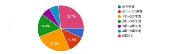 あなたが使っているガソリンスタンドのクレジットカードはどれぐらいの期間使っていますか。あてはまるものを1つ選んでください。