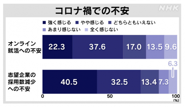 NHKが現役大学生に、新型コロナウイルスの影響が広がる中での就職活動への不安についてアンケートをとったところ、このような回答が得られました。