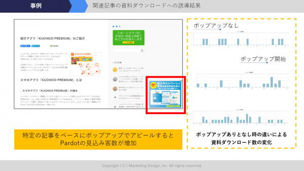 関連記事の資料ダウンロードへポップアップでの誘導結果