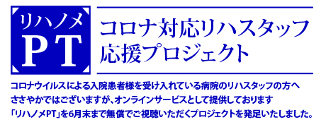 新型コロナウイルス感染症 対応リハスタッフ応援プロジェクト〜オンラインセミナー『リハノメPT』無償提供のご案内〜