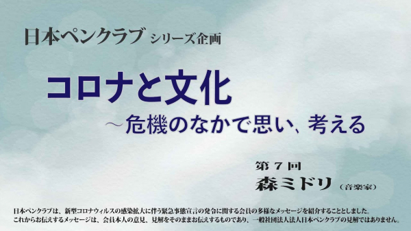 日本ペンクラブによる「コロナと文化〜危機のなかで思い、考える」シリーズで、スリーシェルズ提携アーティストの森ミドリが動画を発表。