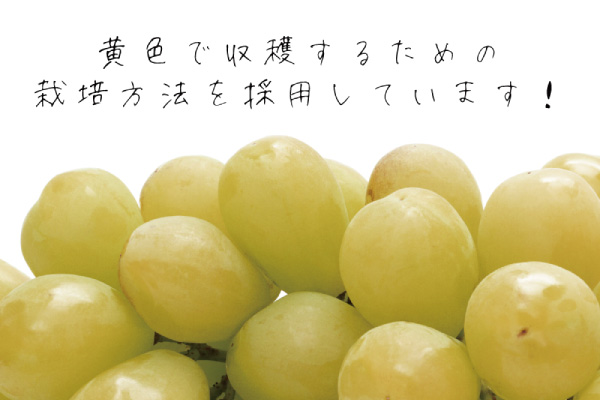 人が歳を重ねて人間味を深めるように、果物も時を重ねて味を深めます。完熟がゆえに市場に流通しにくい、落ち着いた黄色味を帯びたシャインマスカット。外見の派手さはなくとも、深い味わいを備えた、そんな「大人なシャインマスカット」をこの機会に是非お試しください。