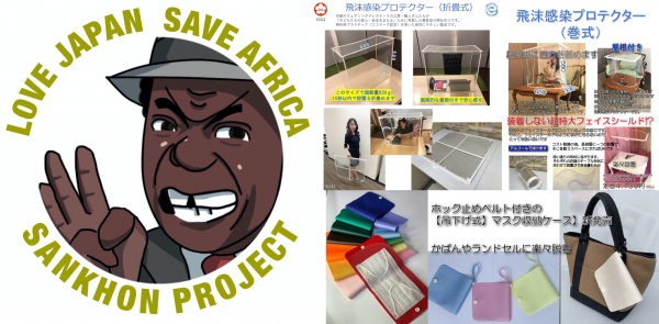 クロスボーダー人財育成と事業開発を行う株式会社スペース(東京都渋谷区、代表取締役社長 春山祥一)は、同社取締役であるオスマン・サンコン (Ousmane Sankhon 駐日ギニア共和国大使館顧問 ギニア共和国元大使・タレント)監修による、日本の斬新なアイデア商品を紹介することでアフリカを支援する「サンコンプロジェクト」の第一弾として、6月18日(木)から21日(日)、同月26日(金)から28日(日)の計7日間、渋谷区広尾商店街にポップアップストアを出店し、学校や塾での子どもの感染予防のために京都の縫製工房が開発した、「飛沫感染プロテクター」と色鮮やかな「マスク収納ケース」(全20色)を販売いたします。