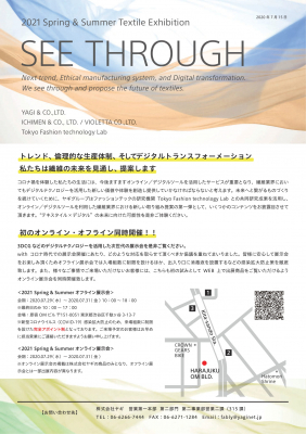 株式会社TFL(渋谷区神宮前・代表取締役 市川雄司)が運営するファッションテック専門スクール「Tokyo Fashion-technology Lab(TFL)」は、繊維専門商社の株式会社ヤギ(大阪市中央区久太郎町・代表取締役社長 八木隆夫)と共同で「2021 Spring&Summer Textile Exhibition」」を2020年7月29日(水)〜7月31日(金)の期間で開催します。