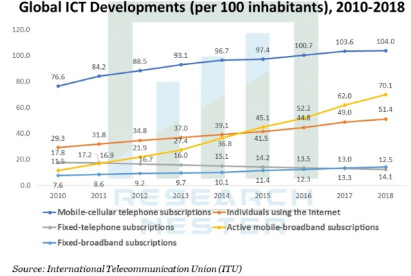 国際電気通信連合(ITU)の統計によると、インターネットを使用する個人は、2010年の100人あたり29.3人から2018年の100人あたり51.4人に増加しました。
