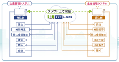 製造業界において、発注企業と受注企業の双方で行われている受発注業務を、