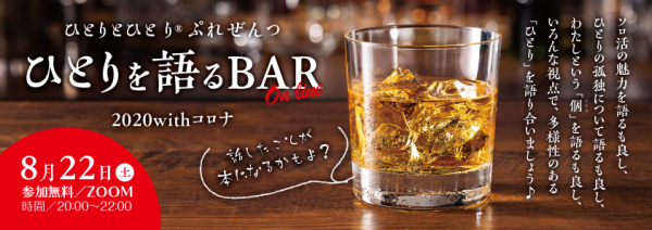 日本初のおひとりさまメディアと共に考える、「withコロナ時代」で『ひとり』はどう変わる?! 8月22日(土)20時〜 「ひとりを語るバー」オンライン 2020 withコロナ【参加無料】