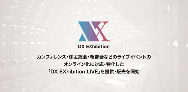 オンライン・バーチャル展示会サービス「DX EXhibition」。カンファレンス・株主総会・報告会などライブイベントのオンライン化に対応・特化した「DX EXhibition LIVE」を販売開始。