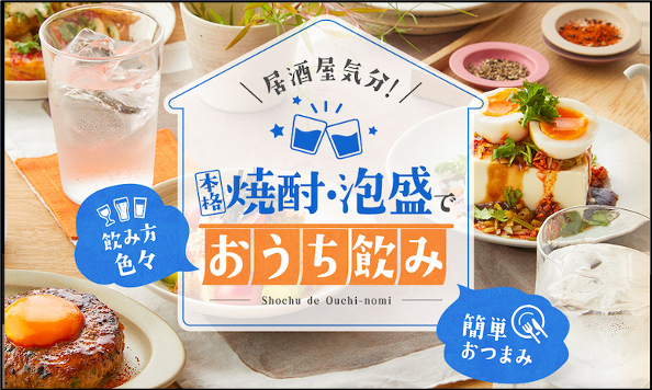 昨今の外出自粛要請により「家飲み」ニーズが増加するなか、日本酒造組合中央会では、本格焼酎や泡盛の理解獲得および啓蒙、魅力の発信するため、本格焼酎や泡盛の魅力とおうち飲みにぴったりなおつまみレシピを紹介したタイアップページをレシピサービス「クックパッド」にて公開いたします。2020年は夏と秋の二段構成にて本格焼酎・泡盛の魅力を発信していきます。